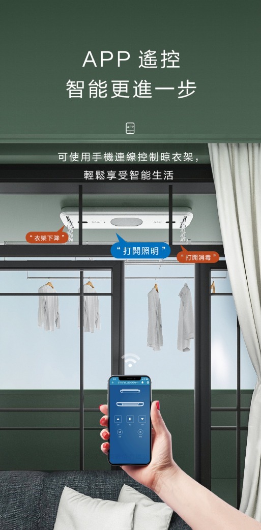可使用手機連線控制曬衣架,輕鬆享受智能生活。